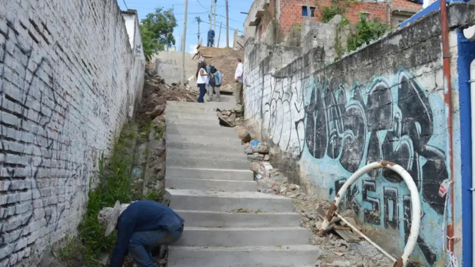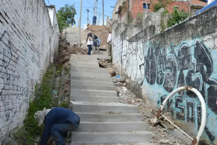 Escaleras urbanas Avanzan obras en tres conexiones claves entre barrios de San Salvador Infraestructura continúa obras en escaleras urbanas, y ahora se concentra las que unen los barrios El Chingo y Centro, y Gorriti y Alto Gorriti.