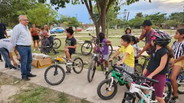 "Desde el municipio realizamos la entrega de los cascos para que cuando los chicos practiquen puedan hacerlo de manera seguro, tal como corresponde", subrayó al tiempo que recordó "hace un par de semanas sumamos nuevas bicicletas para todos los chicos que deseen sumarse y no cuenten con una bici, lo puedan hacer".