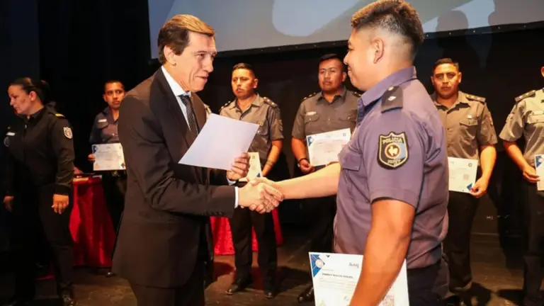 El gobernador Carlos Sadir participó del acto de finalización de un curso básico de formación de 15 efectivos de la Dirección General de Bomberos de la Policía jujeña, en lucha contra incendios, buceo, natación, rescate en altura y otros procedimientos.