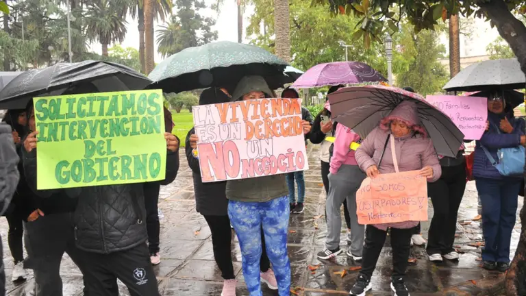 Vecinos del barrio Tupac Amaru de La Ovejería, en Monterrico, se manifestaron frente a Casa de Gobierno para pedir la intervención de las autoridades provinciales ante el temor de ser desalojados de las viviendas en las que residen desde hace casi una década. Aseguraron que fueron notificados de un proceso judicial por falta de pago de los terrenos y denunciaron una serie de irregularidades.