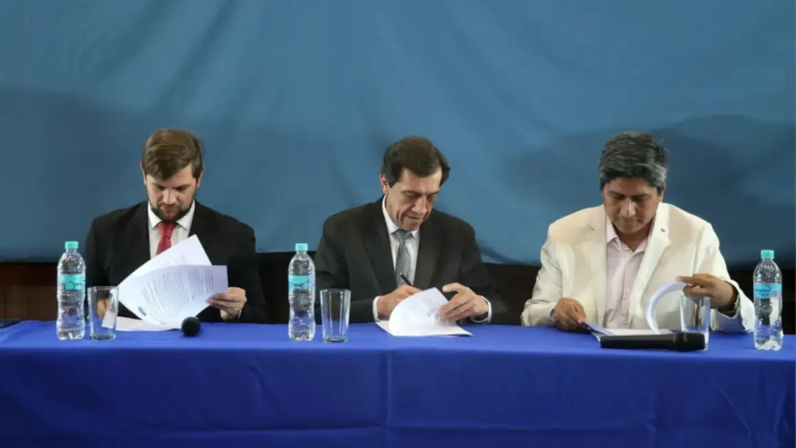 El acuerdo de colaboración fue refrendado por el gobernador Carlos Sadir, quien encabezó el acto junto al titular de Jemse, Exequiel Lello Ivacevich, y el decano de la Facultad de Ingeniería, Alejandro Vargas. La rúbrica se llevó a cabo en el auditorio de la Unju, con la presencia de docentes, estudiantes de las diferentes carreras y del último año de la Escuela de Minas.