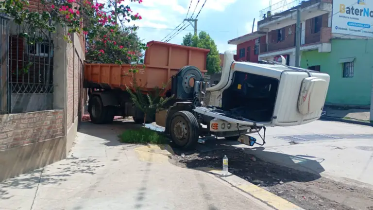 El conductor del camión de carga intentó una frenada de emergencia, pero el vehículo pesado no logró detenerse a tiempo. Según los datos iniciales, el camión se fue hacia atrás y, en lugar de chocar con la camioneta, impactó con su parte trasera contra una casa ubicada en la esquina de la rotonda.