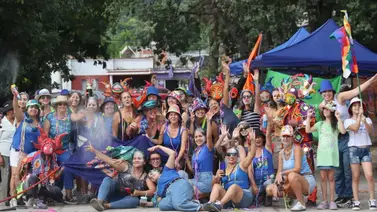 Con música carnavalera y los diablos dando vueltas por toda la cuadra, "Las chulas" celebraron ayer diez años de existencia en el barrio Los Perales.
