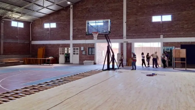 En ese marco, este jueves se realizó un recorrido por las instalaciones del Colegio Parroquial de la ciudad de El Carmen donde se encuentra en plena ejecución la construcción de una nueva cancha de básquet con piso de parqué.