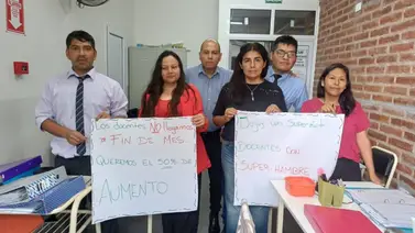 Docentes de distintas instituciones educativas de la provincia realizaron ayer un "cartelazo" en los establecimientos para visibilizar el reclamo por mejoras salariales y exigir una urgente convocatoria a paritarias. La medida fue impulsada por el Centro de Docentes de Enseñanza Media y Superior (Cedems) y se enmarca en un plan de lucha que continuará hoy con un paro y movilización.