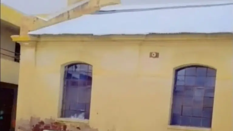 En las imágenes se observa cómo comienza a desprenderse lentamente escarcha acumulada en el techo de la escuela. Primero caen pequeños trozos, pero segundos después se produce una caída continua de terrones de hielo, lo que provoca sorpresa, risas y emoción entre los niños que presencian la escena.