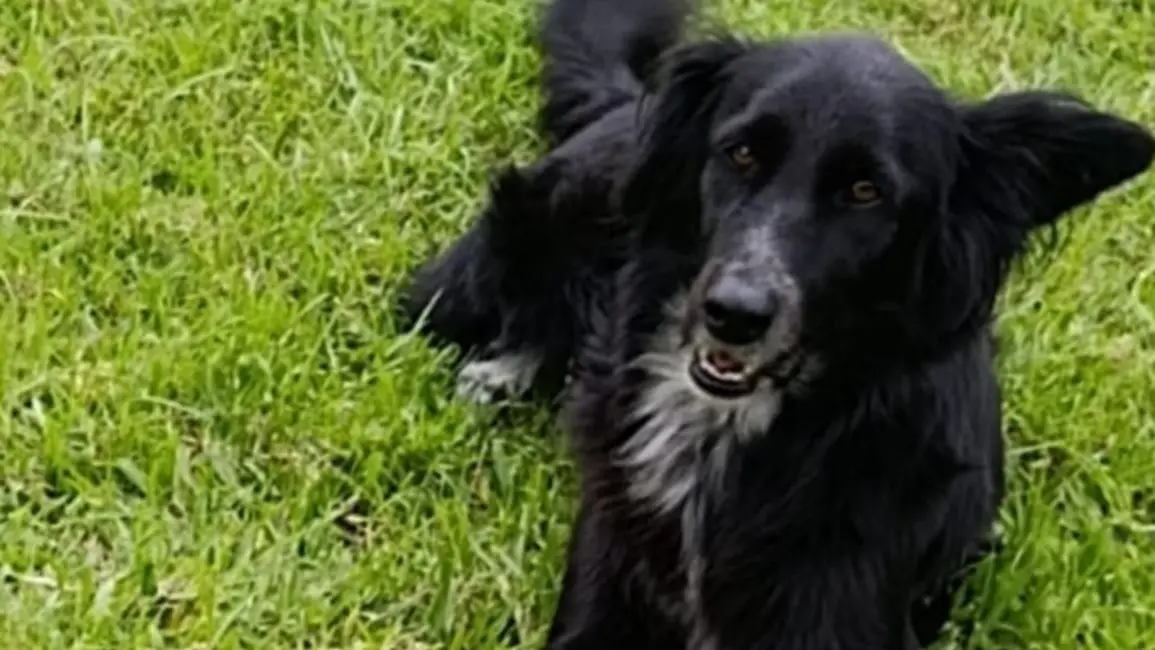 Una perrita llamada Mora se encuentra perdida desde el martes pasado. Es de color negro con manchitas blancas en sus patas y una corbata blanca en el pecho.