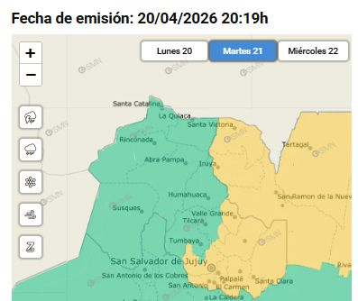 Para esta noche la alerta amarilla alcanza a las zonas montañosas de Doctor Manuel Belgrano, Humahuaca, Tilcara y Tumbaya.