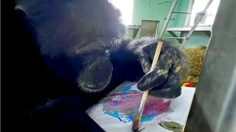De esta manera, Osbourne planteó en cinco lienzos intrincadas capas base multicolores, y luego los artistas simios del santuario añadieron sus propias pinceladas.