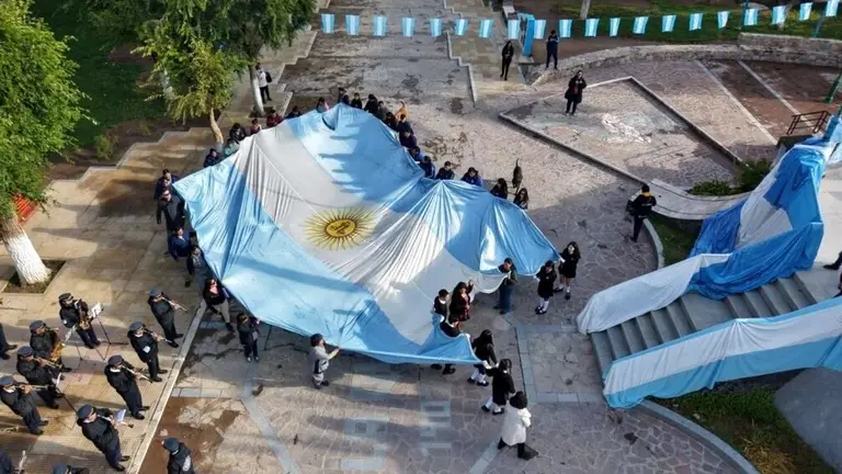 La semana de actividades comenzó con el izamiento del pabellón patrio en Plaza Centenario, a cargo de diferentes instituciones del medio. Hoy se sumarán otras desde las 9, como el Hogar de Ancianos, Jubilados y Pensionados, Correo Argentino, Banco Macro, Banco Nación y Pami.