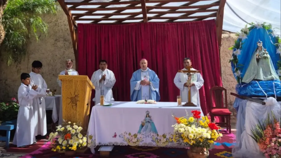 El párroco Abraham Pereyra ofició la solemne misa en la que estuvieron presentes el presidente de la Comisión Municipal de Tumbaya, Javier Medina, y el presidente de Cámara de Diputados de Jujuy y vicegobernador, Alberto Bernis, además de otras autoridades provinciales y municipales.