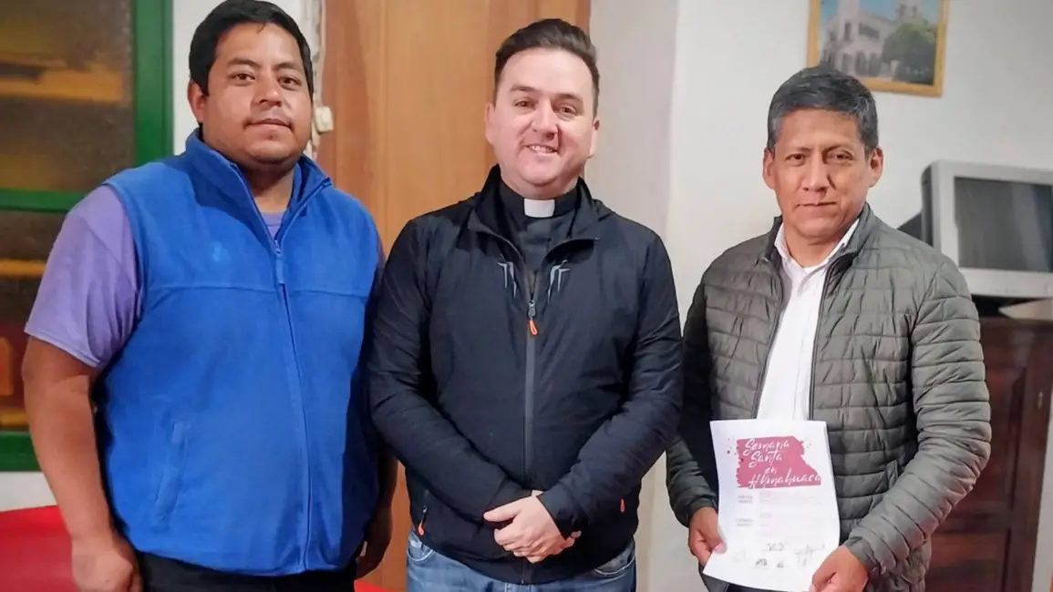 El secretario de Educación y Cultura municipal, Marcelo Cáceres, junto al director de Cultura, Yamil Tactaca, fueron recibidos por el párroco humahuaqueño David Bazán en la casa parroquial para hablar y coordinar las acciones litúrgicas.