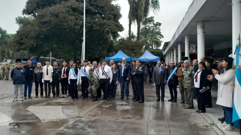 Tras el izamiento de las Banderas Nacional y de la Libertad Civil, se escucharon los mensajes de un veterano de guerra y del intendente Rubén Eduardo Rivarola.