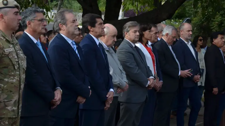 La ceremonia fue encabezada por el gobernador Carlos Sadir y contó con la presencia del intendente capitalino Raúl Jorge, además de diputados provinciales, concejales, veteranos de Malvinas, asociaciones gauchas y fuerzas de seguridad.