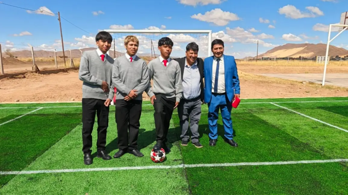 Dijo también sentirse muy bien por haber cumplido con su compromiso en construir la cancha de fútbol 5 de césped sintético, que forma parte de una política orientada a facilitar el acceso de los alumnos a espacios de calidad para la práctica deportiva y donde podrán desempeñarse con seguridad.