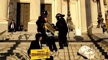 Los manifestantes saltaron la reja del Palacio Legislativo para expresar su rechazo a las modificaciones previstas en la Ley 26.639, que es la normativa vigente desde 2010.