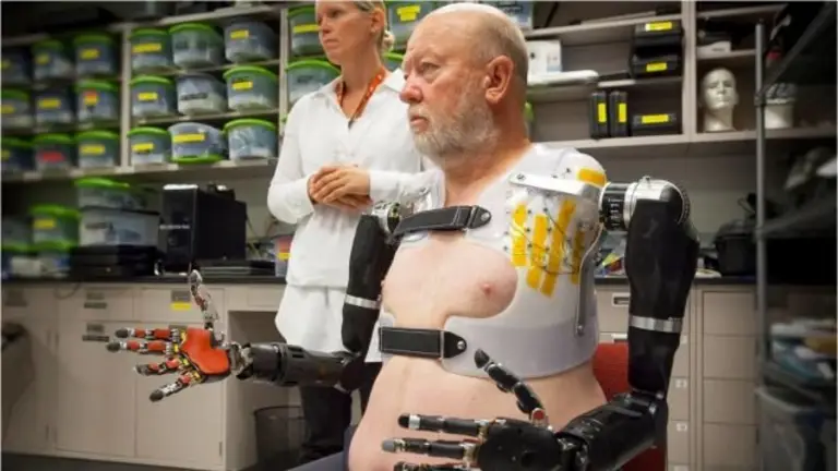Antes de utilizar la prótesis, Baugh se tuvo que someter a cirugía para reconectar las terminaciones nerviosas de su torso a los electrodos y conexiones de la carcasa del sistema. Esas terminaciones nerviosas envían información a la prótesis que, mediante algoritmos, la interpreta y transforma en movimientos casi al instante.