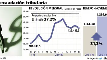 El acumulado a noviembre de 2015 trepó a $1.392,9 millones, lo que significó un alza del 31,3% contra el mismo período del año anterior y un 3,4% más de la meta de recaudación a noviembre.