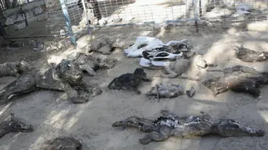 Jaulas vacías y varios animales moribundos