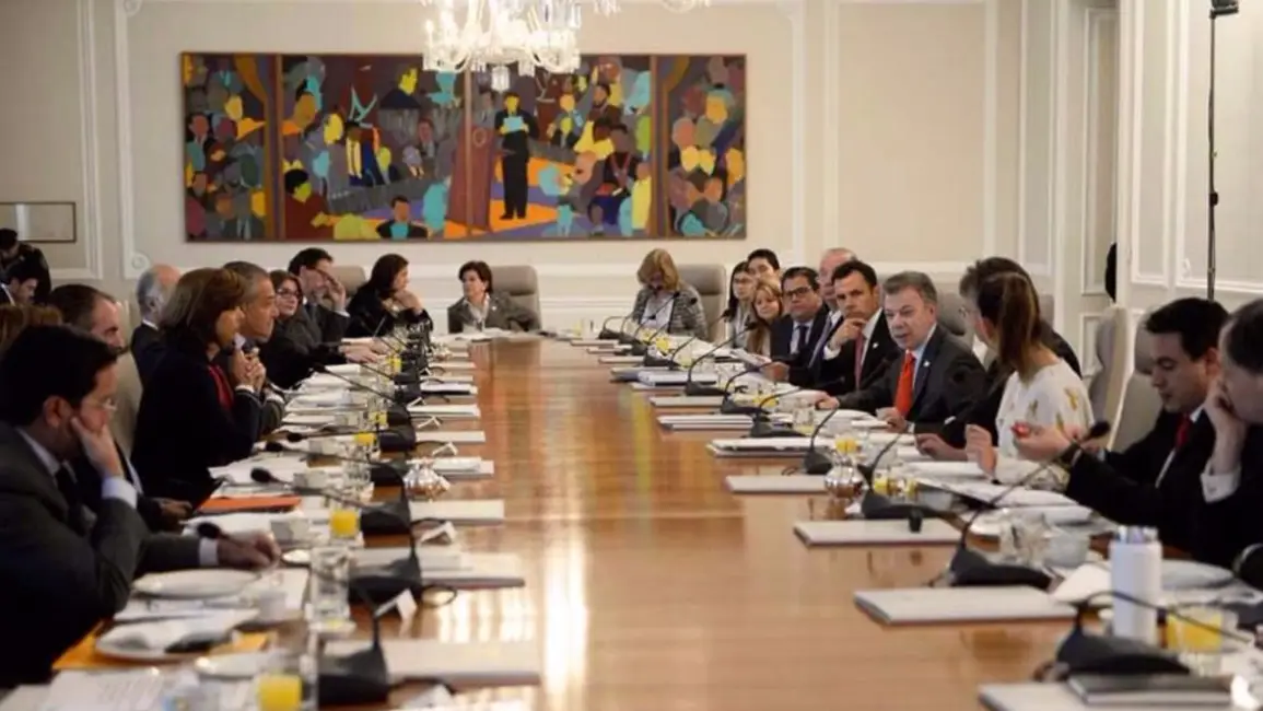 La decisión, anunciada tras un consejo de ministros encabezado por Santos en la presidencial Casa Nariño, se toma "entendiendo que en los próximos días inicia el último año de su gobierno y para que quede en libertad de estructurar el equipo que lo acompañe para el cierre del mismo", agregó.