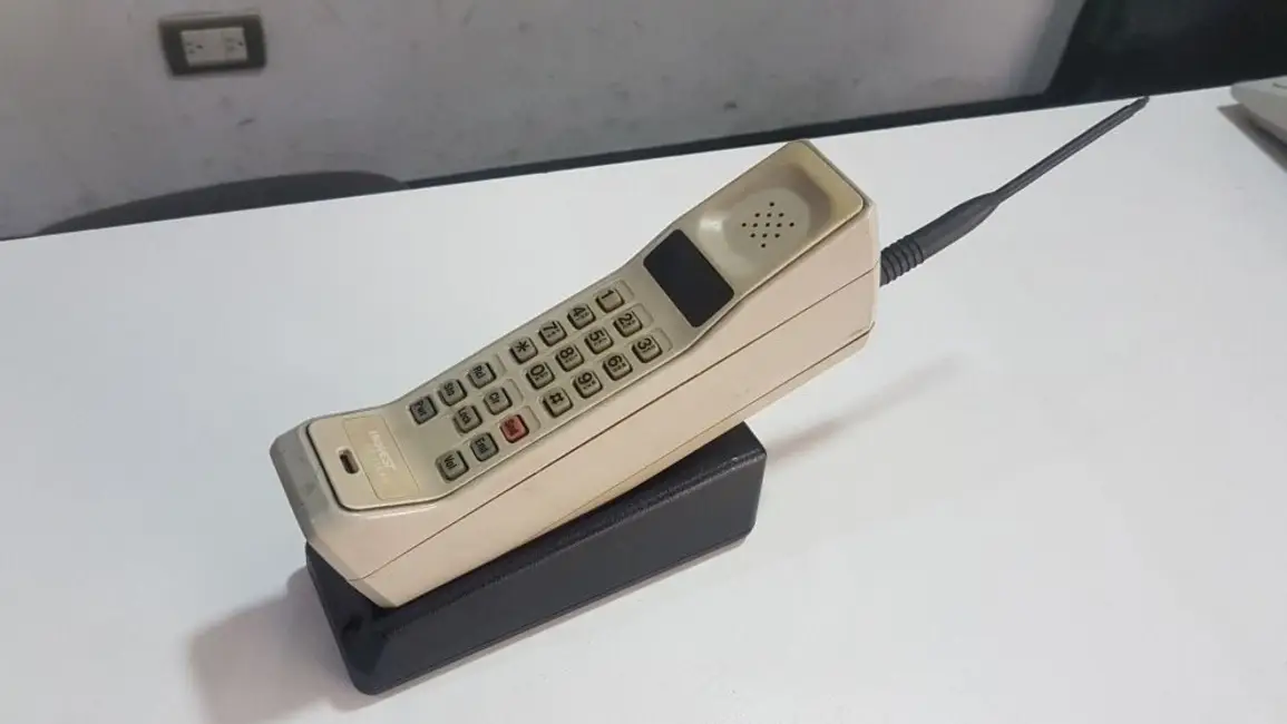 Para comunicarse usó el primer celular de la historia: el Motorola DynaTAC 8000X, que pesaba casi un kilo (cinco veces más que el iPhone Xs Max) y medía 33,02 x 8,89 centímetros
