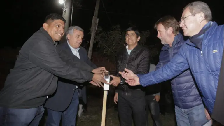 El gobernador Gerardo Morales encabezó en La Mendieta sendos actos de inauguración de red de iluminación para el barrio 23 de Agosto y de red de agua potable y cloacal para el barrio San Martín. El mandatario provincial ponderó el trabajo conjunto con la comuna para brindar servicios básicos a la gente.