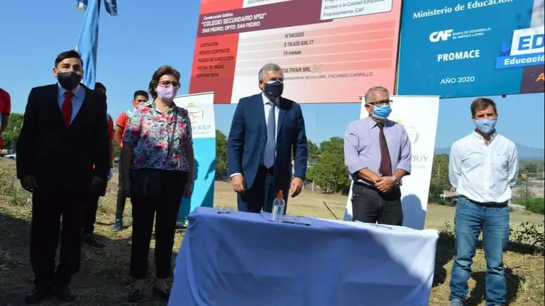 El gobernador de la Provincia Gerardo Morales, encabezó al acto de firma del acta de inicio de obra del Colegio Secundario Nº 52 del barrio La Merced de San Pedro de Jujuy, obra incorporada al Programa Mejoramiento y Acceso a la Calidad Educativa con financiamiento de la CAF. Para el nuevo edificio se invertirá 79.500.000 millones de pesos con un plazo de obra de 15 meses.