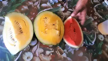 Así lo informó el productor Luis Perales, de Palma Sola, quien explicó: "ahora la pusimos escalonada y las otras van a empezar a salir dentro de poco, y ya estamos cosechando. La sandía amarilla se diferencia de la roja en el sabor, es más dulce y más jugosa; le dicen personal pero es ideal para una familia, porque es de unos tres kilos", precisó.