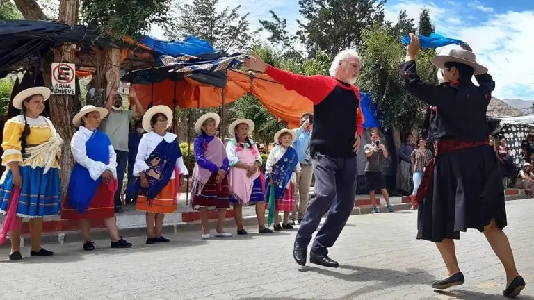 El Cuerpo de danzas "Herencia Cultural Tilcara", integrado por mujeres adultas mayores y dirigido por Nancy Díaz, homenajeó a Saavedra bailando cuecas y bailecitos interpretados por el grupo Cacharpaya.