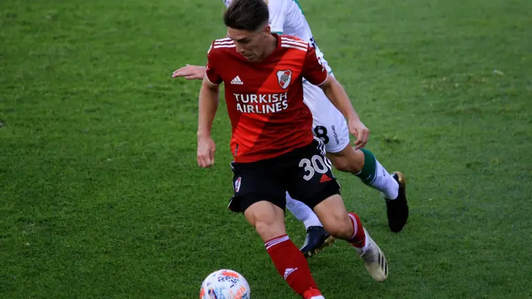 Las situaciones más claras de la primera parte fueron para River. De La Cruz ejecutó un tiro libre que dio en el palo y un centro de Julián Álvarez que se desvió en Franco Quinteros pegó en el travesaño.