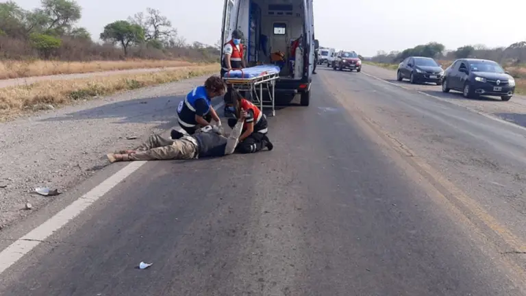 Una persona mayor que se desplazaba a bordo de una motocicleta sufrió heridas de consideración en la mañana de ayer, al ser embestida por una camioneta, cuando circulaba por la ruta nacional 34.