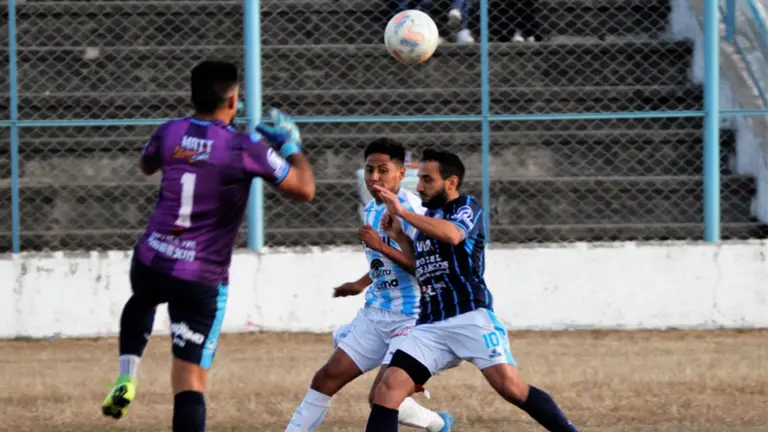 Justiniano, promediando el complemento, definió por arriba del travesaño desperdiciando otra chance para los de Perico.