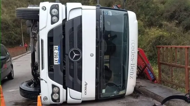 Un hombre resultó providencialmente ileso, luego de volcar el camión que conducía, cuando intentaba cruzar el puente del dique Los Alisos.