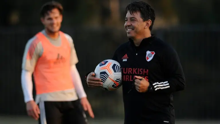 De este modo, y tras aclarar que tendrá a todo los jugadores disponible, el posible equipo para mañana con: Franco Armani, Milton Casco, Emmanuel Mammana, Paulo Díaz y Elías Gómez: Nicolás de la Cruz, Enzo Pérez, Rodrigo Aliendro y Santiago Simón o Esequiel Barco; Lucas Beltran y Solari.