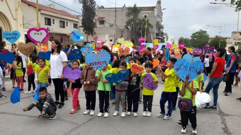 En otro tramo, explicó que la jornada de la mañana no se vio empañada por la lluvia, pero a pesar de eso el entusiasmo de los niños, docentes y padres no decayó. “Cada grado presentó el tema elegido para resaltar los valores y llamar a la reflexión a todos los que escucharon. Cada valor, estaba trabajado en una canción y los chicos de 7mo, crearon su propia canción, dejándola como su legado para la institución. Recorrimos las calles, la gente salió a escucharlos, los transeúntes se paraban a leer los carteles y otros los filmaban y aplaudían. En la tarde ya no llovió y esta actividad se inició a las 15 con un amplio recorrido exitoso”, continuó.