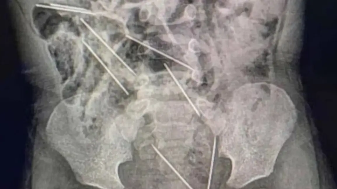 Los médicos le realizaron los estudios en los que detectaron la presencia de las agujas diversas partes de su cuerpo: dos en el peritoneo lado derecho, tres en el lado izquierdo, uno en la pared abdominal y las dos restantes entre la vejiga y el recto.