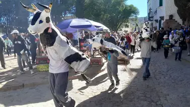 La columna mientras se acercaba al templo con las melodías de las bandas de sikuris, recorrió los cortos tramos de las calles Jujuy y Buenos Aires antecedida por tres toritos (representados por los niños Francisco Córdoba, Eric Guzmán y Lautaro Yugar), que llamaron la atención de los transeúntes y turistas cuando comenzaron a reventar los cohetes colocados en su lomo.