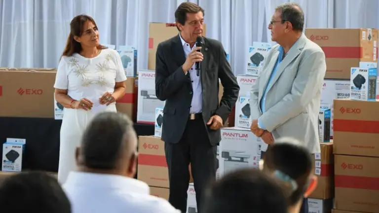 El gobernador Carlos Sadir entregó nuevo equipamiento tecnológico para Educación en Libertador General San Martín, con la finalidad de "continuar fortaleciendo y modernizando los servicios" de las dependencias de gestión educativa de la provincia, afirmando que se trata de "herramientas indispensables para agilizar trámites y gestiones, tanto para las instituciones como para el personal docente y estudiantes".