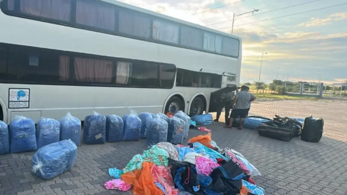 En 74 bultos dentro de un colectivo de tour de compras. Dos detenidos.