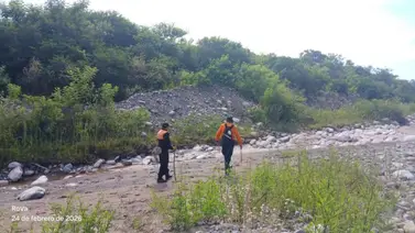 Las tareas de búsqueda se realizan con diversas técnicas: rastrillaje a pie, patrullajes montados y el uso de drones para sobrevolar el caudal del río y zonas de difícil acceso.