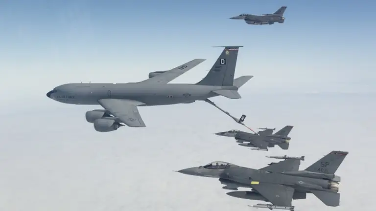 El KC-135 Stratotanker es uno de los pilares históricos de la capacidad de reabastecimiento aéreo de la USAF. Derivado del avión comercial Boeing 707, el modelo ha sido durante décadas un componente esencial para sostener operaciones aéreas de largo alcance, permitiendo a cazas, bombarderos y aviones de vigilancia extender significativamente su autonomía.