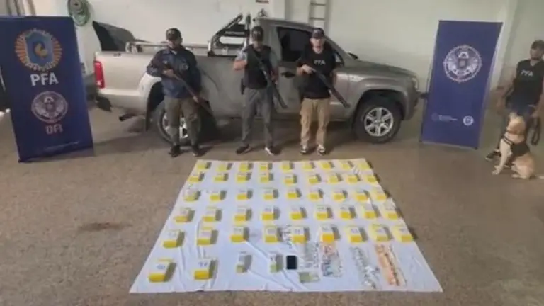 Más de 64 kilos de cocaína de máxima pureza fueron secuestrados tras un operativo llevado a cabo por los efectivos de la Policía Federal, donde además se logro la detención de dos hombres y el secuestro de una camioneta 4x4.