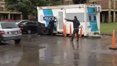 En el medio de la escena, y tras haber perdido de vista a los delincuentes, el cronista encontró una garita de la Policía de Buenos Aires, desde la cual salió un agente. “¡Ey, maestro! ¿No viste a los chorros corriendo? ¡Estamos gritando!“, le recriminó el periodista. Y le señaló que los ladrones pasaron por delante del destacamento con todos los elementos robados. ”La impotencia es tremenda", lamentó el cronista. “Pasaron por delante de la garita y estaban los dos oficiales metidos adentro”, graficó.