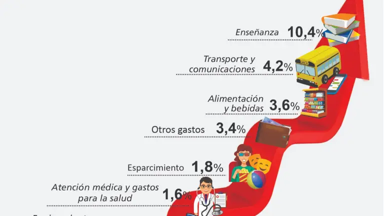 En la región fueron los gastos en educación (18,1%), transporte (5,1%), recreación (4,8%) y alimentos (4,4%) los que impulsaron la inflación, en sintonía con el resto del país.