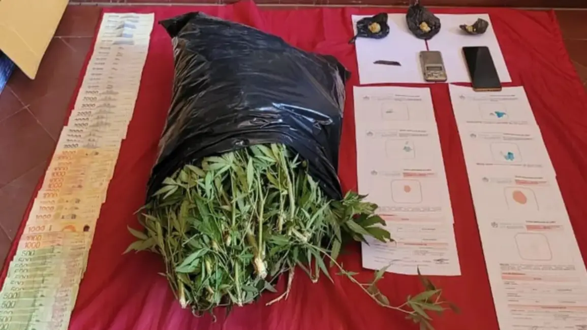 Sustancias retiradas: Más de 250 dosis de pasta base y cocaína, además de una plantación con 9 plantines de marihuana.