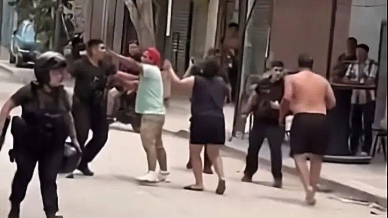 Un video que circuló en redes sociales muestra cómo el hombre, sin remera y descalzo, se enfrenta físicamente con los agentes y después cae tras un disparo.
