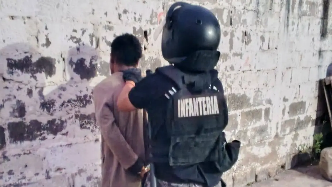 El sujeto intentó escapar trepando por los techos, lo que dio lugar a una intensa persecución a pie que culminó en un terreno baldío de la Avenida 1 de Mayo. Allí, a pesar de que el hombre se tornó extremadamente agresivo y opuso una férrea resistencia, los efectivos aplicaron las técnicas de reducción necesarias para controlar la situación con éxito.