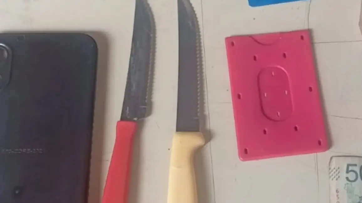 Testigos en el lugar confirmaron la versión, y la mujer terminó entregando dos cuchillos tipo sierrita que escondía entre sus prendas.