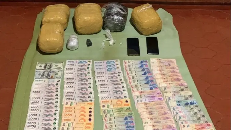 Por esa razón, los uniformados realizaron una inspección que concluyó con resultado positivo. En la requisa encontraron envoltorios con marihuana y pasta base y/o clorhidrato de cocaína, luego de la prueba química que confirmó de qué sustancias se trataba. También tenían en su poder dinero en moneda nacional y extranjera.