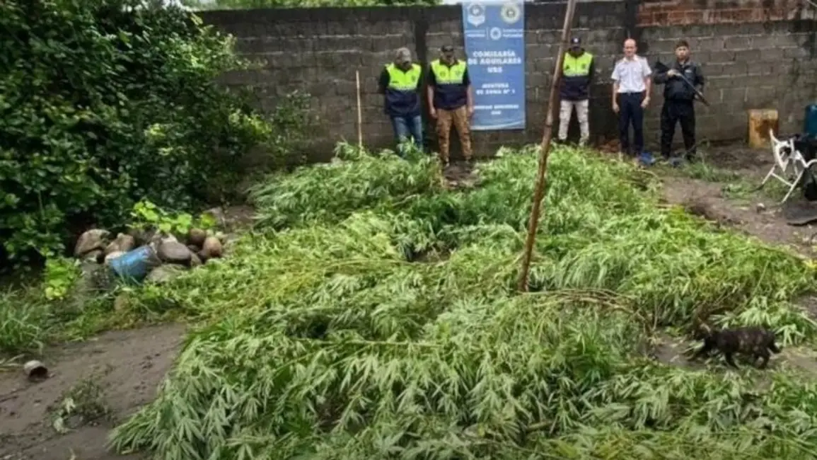En la requisa, los uniformados no encontraron el televisor denunciado, pero sí secuestraron un cartucho de escopeta calibre 12. Sin embargo, el hallazgo más relevante se produjo al inspeccionar el fondo del inmueble, donde se detectó una plantación de cannabis de gran tamaño.